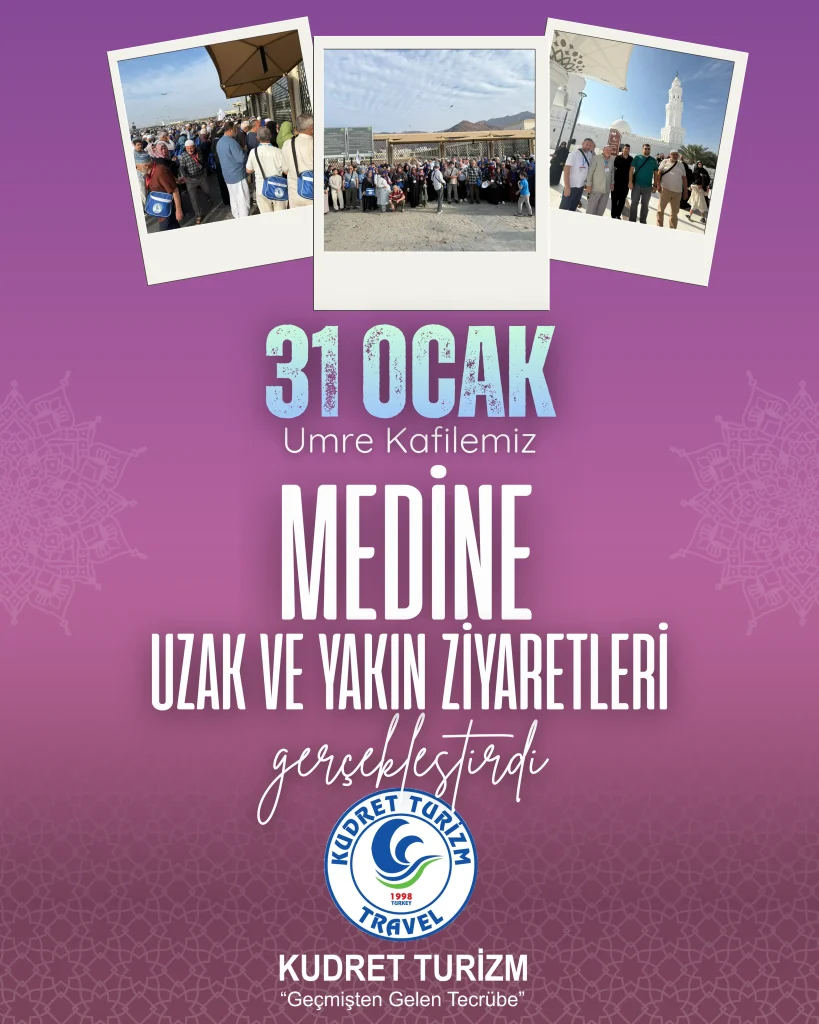 31 OCAK KAFİLEMİZ MEDİNE’DE YAKIN VE UZAK ZİYARETLERİ GERÇEKLEŞTİRDİ 31 Ocak Umre kafilemiz, Peygamber Efendimiz’in (s.a.v) şehri Medine-i Münevvere’de manevi…