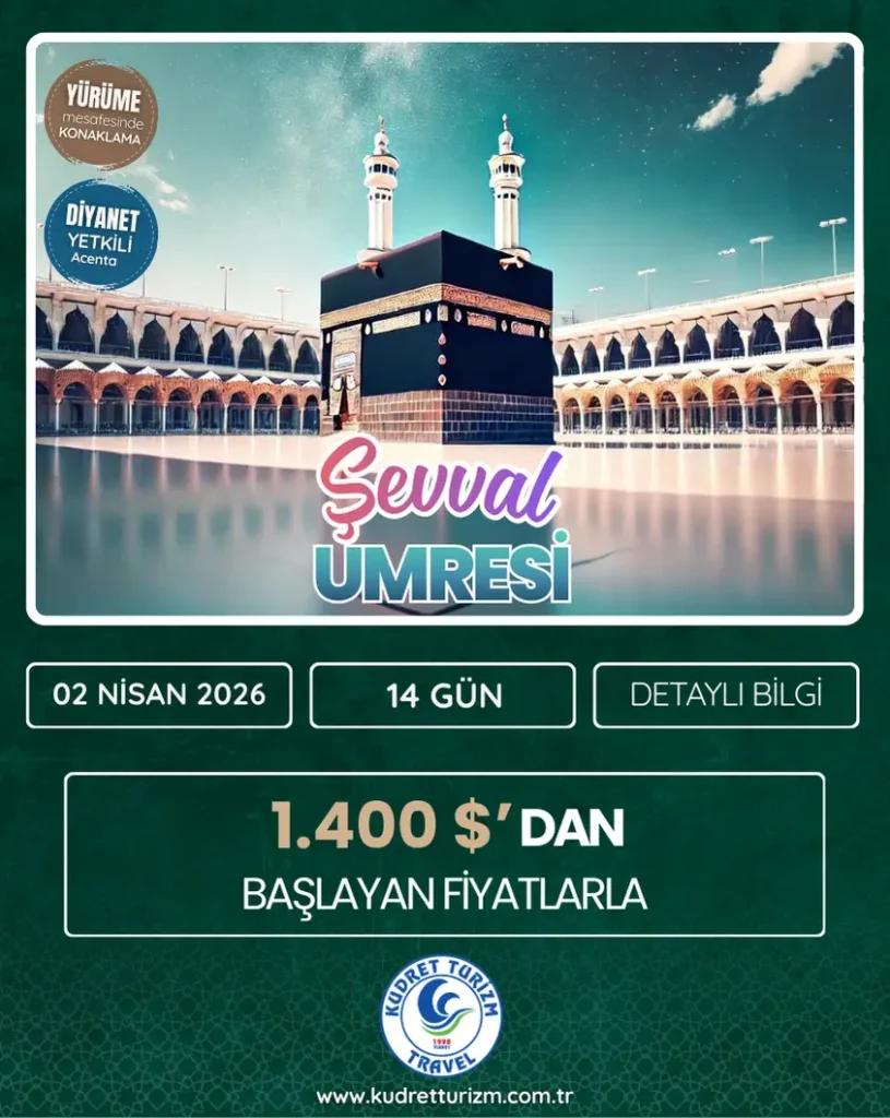 02 NİSAN 2026 ŞEVVAL UMRE PROGRAMI 🌙Şevval Ayının Huzurunu En Kutsal Mekânda Yaşayın! Siz de bu programa katılmak ister misiniz?…