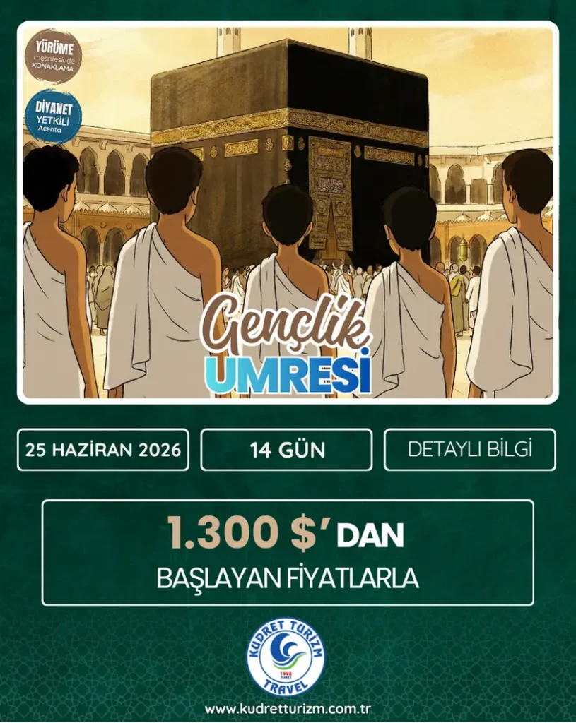 25 HAZİRAN 2026 GENÇLİK UMRE PROGRAMI HAYATININ EN GÜZEL ÇAĞINDA, EN KUTSAL YOLCULUĞA VAR MISIN? Gençliğini en güzel hatırayla taçlandır!…